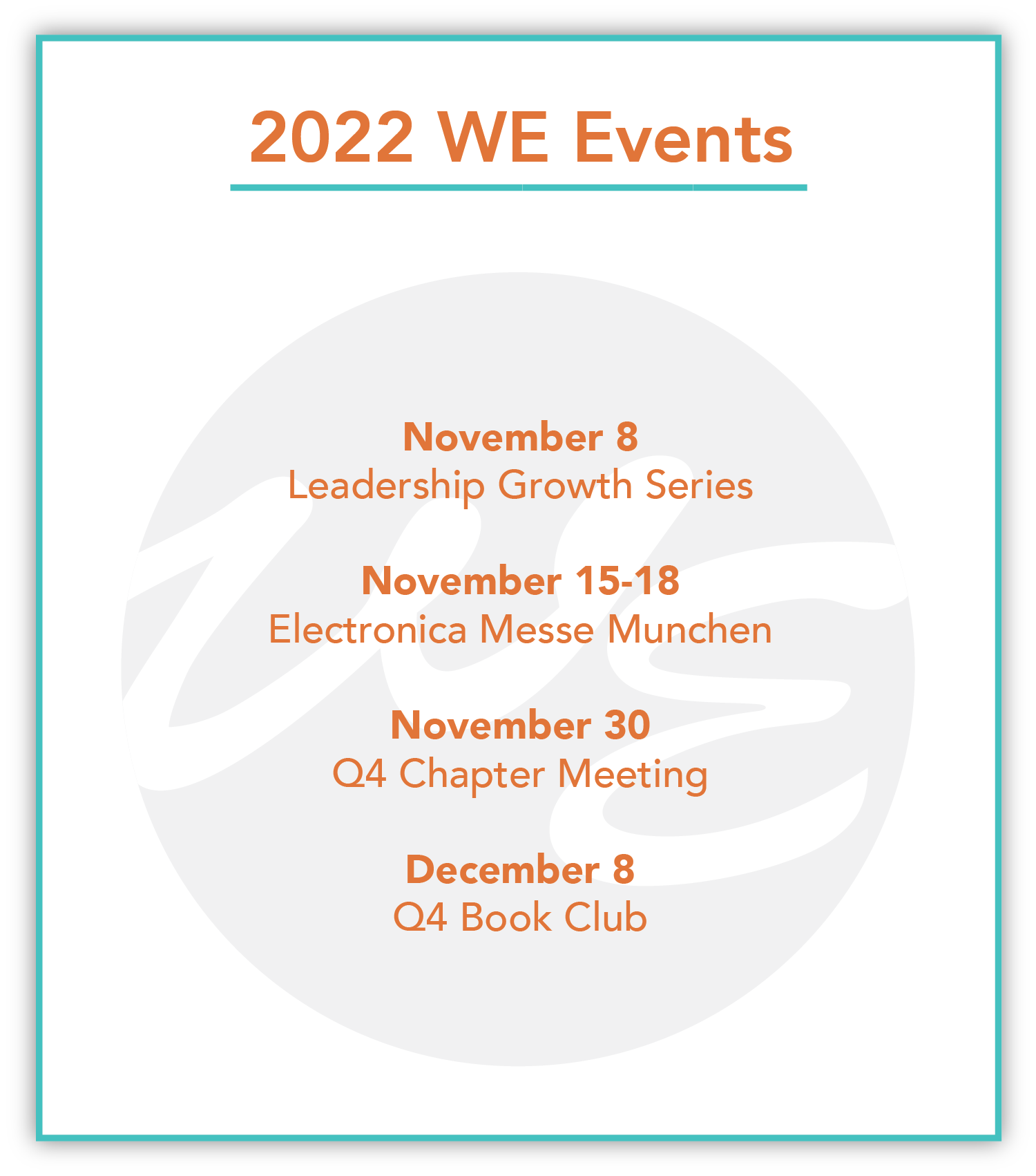 At the Women in Electronics Executive Luncheon at the ECIA Executive Conference, the live panel on "Advancing Cultural Innovation” discussed the growing importance of ESG/DE&I efforts and modern, inclusive HR practices in our businesses. A strong ESG proposition is linked to better talent attraction and retention, a more diverse and inclusive workforce, increased employee productivity, and stronger financial performance. To learn more about how WE can help support your organization's DE&I efforts, email us HERE.